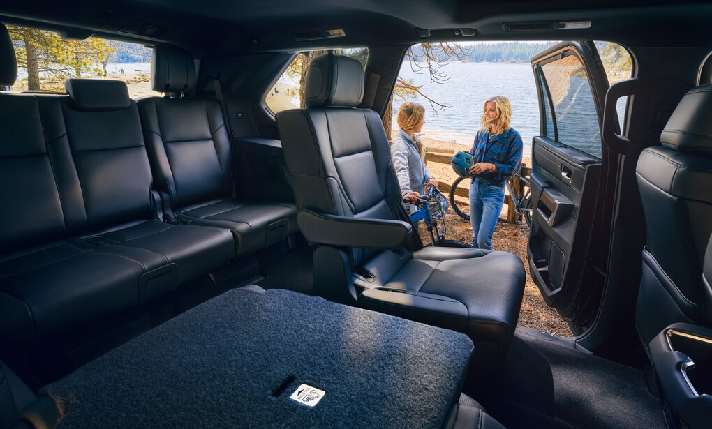 • Available reclining, fold-down, fold-up, tumble-forward second-row captain’s chairs with center armrests on outboard seats